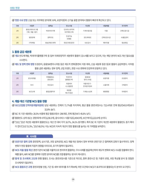 개요 반도체개발, 빅데이터플랫폼구축 등 일부 미래유망직무 세분류의 활용이 감소세를 보이고 있으며, 이는 해당 분야의 NCS 개선 필요성을