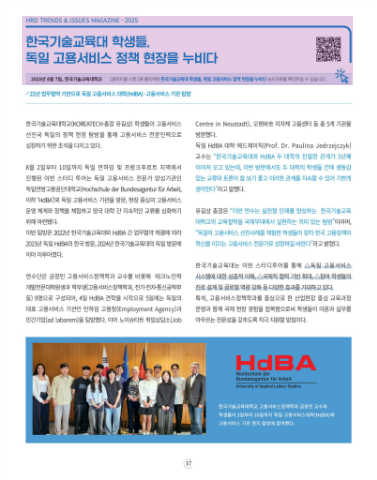 2023년 독일 HdBA의 한국 방문, 2024년 한국기술교육대의 독일 방문에 혁신을 이끄는 고용서비스 전문가로 성장하길 바란다”라고 밝혔다.