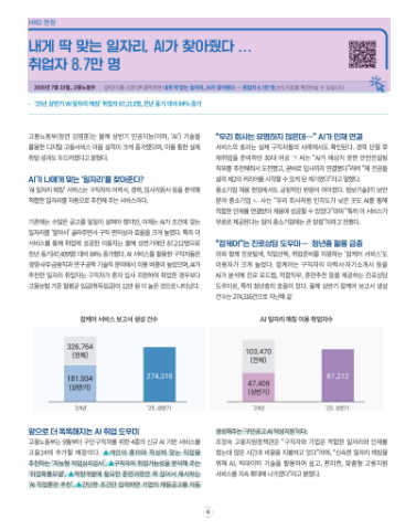 잡케어 서비스 보고서 생성 건수 AI 일자리 매칭 이용 취업자수 수 있다.